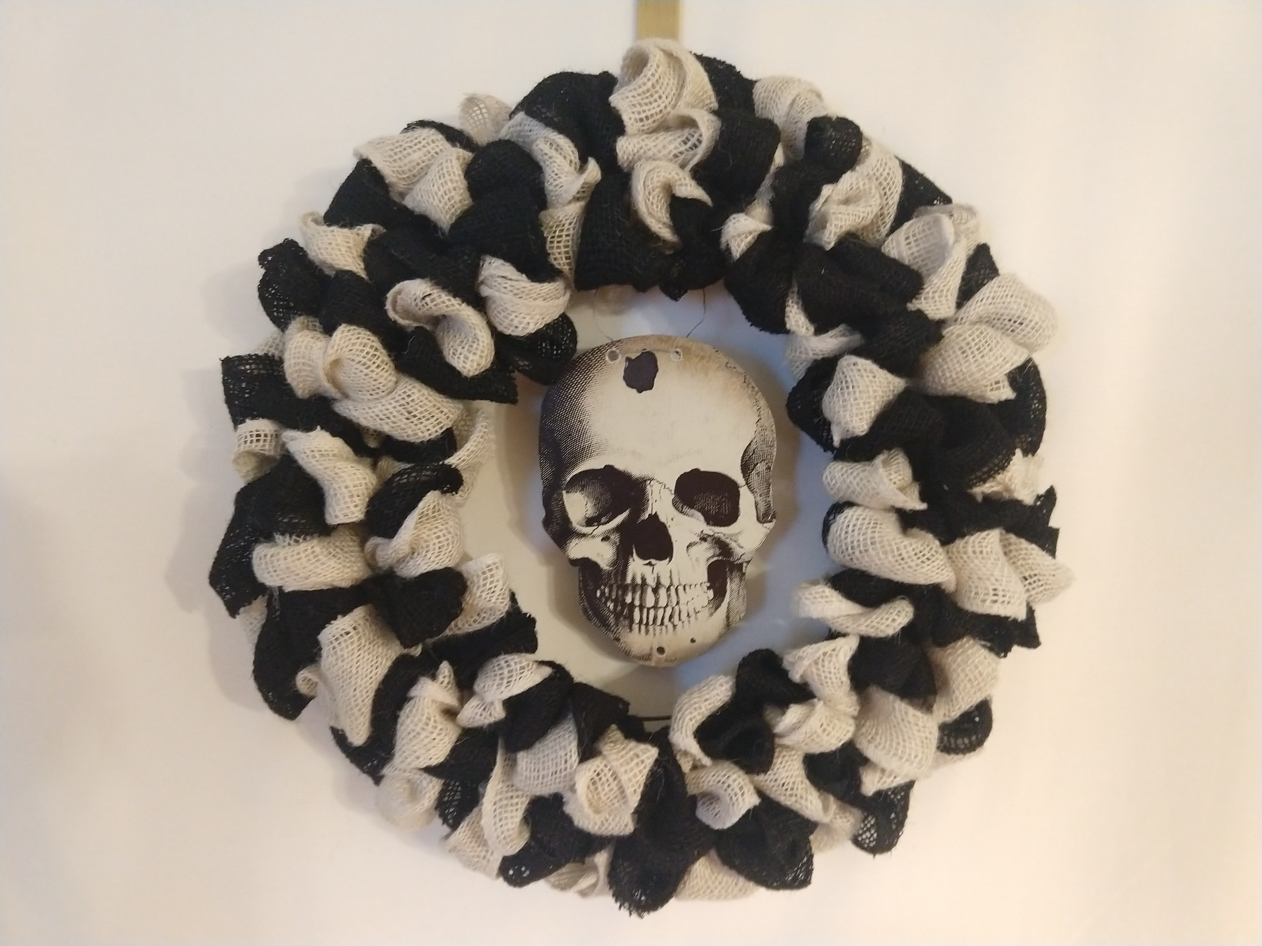 Black and White Skull Ribbon Wreath