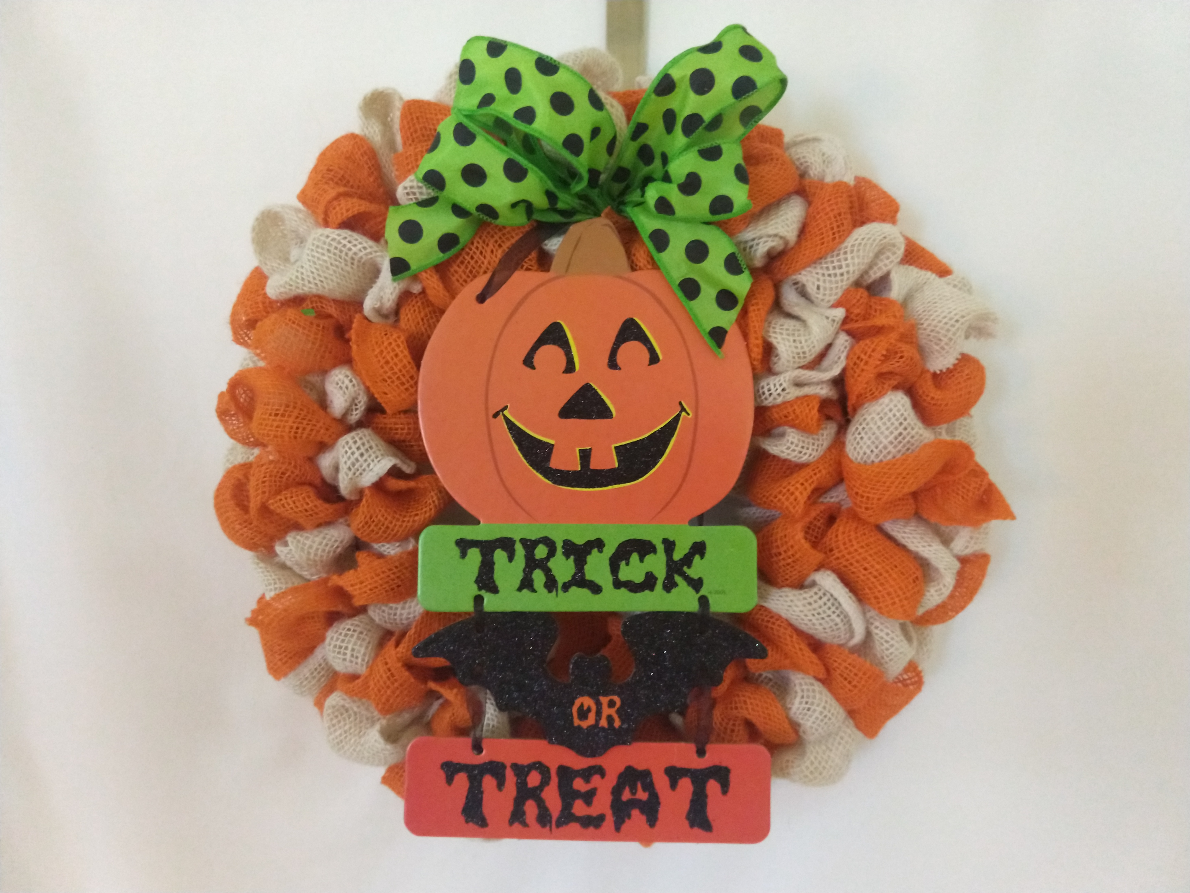 Orange and White Pumpkin Ribbon Wreath